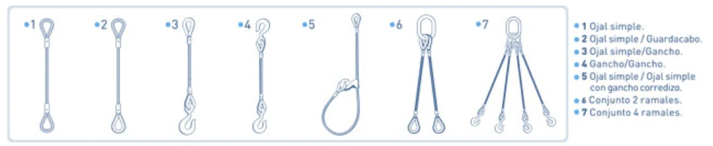 -Diámetro del Cable: Ofrecidas en diferentes diámetros para adecuarse a las especificaciones de carga y manejo requeridas.