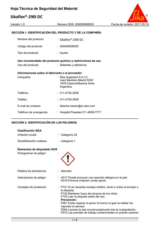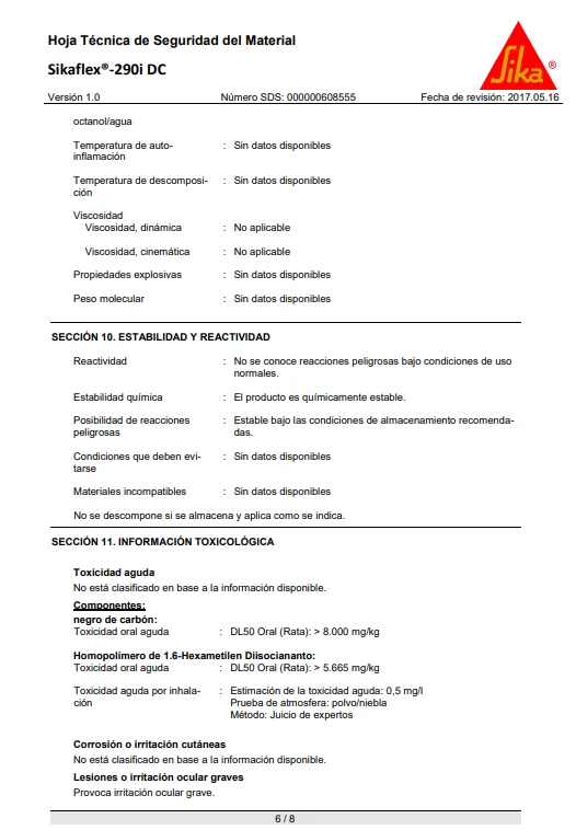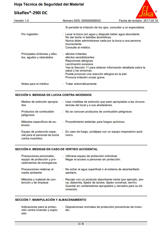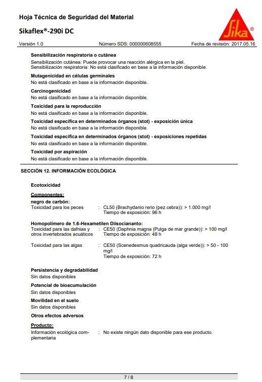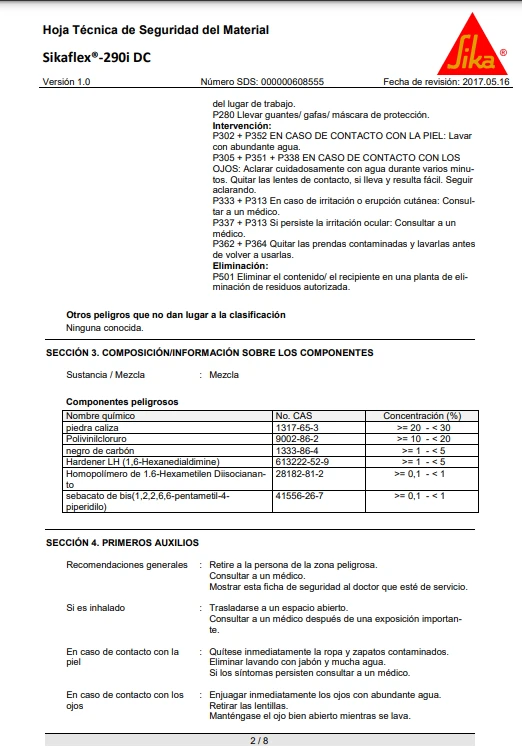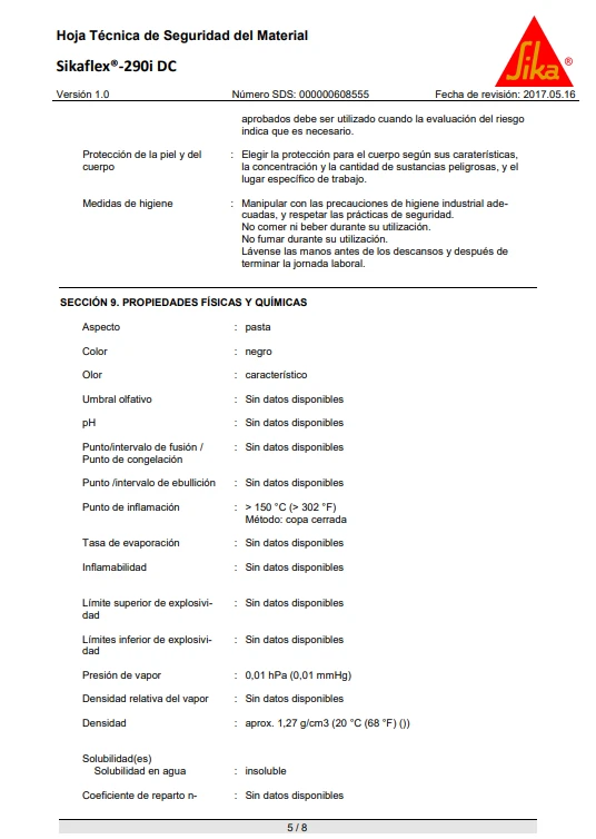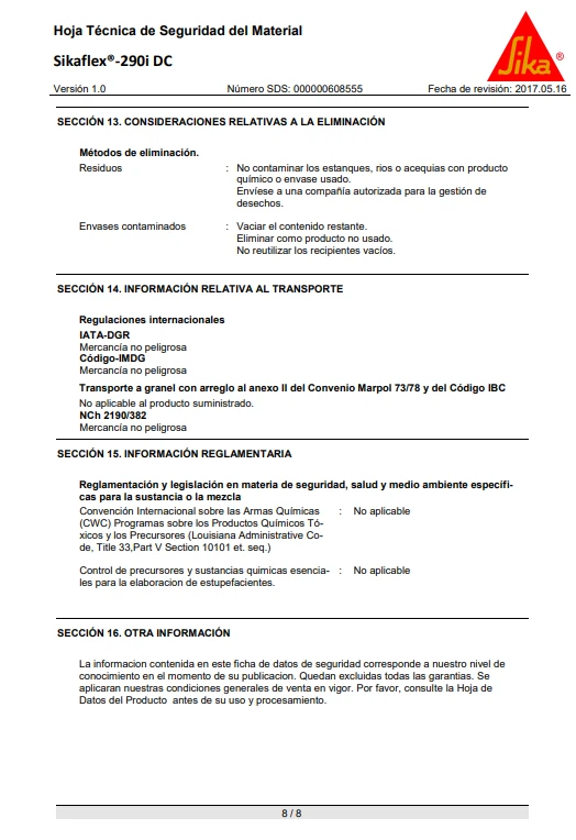 Sikaflex®-290 DC PRO cumple con los requisitos establecidos por la Organización Marítima Internacional (OMI).